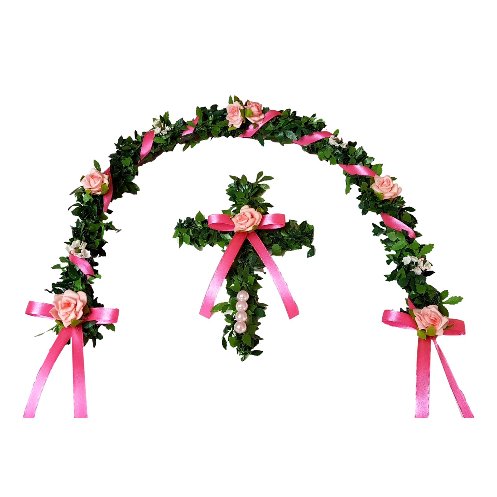 Ehrenplatzdekoration rosa mit kreuz zur Kommunion