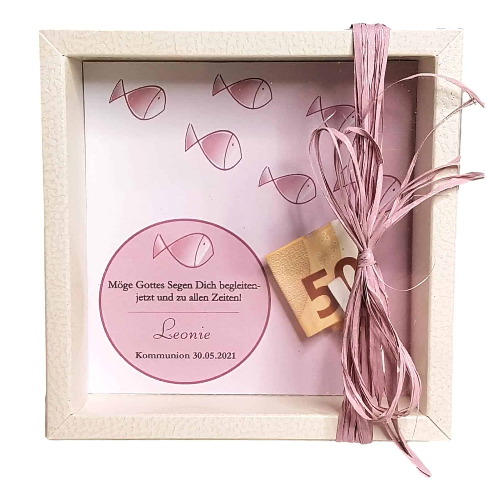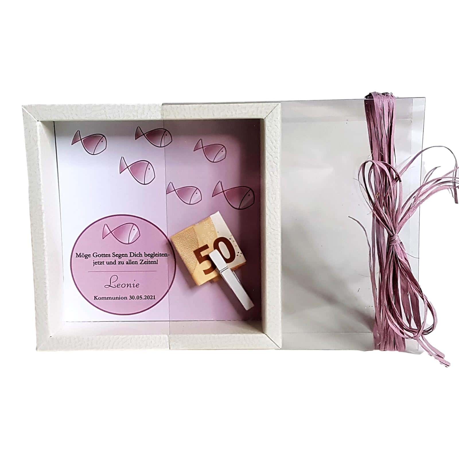Geldgeschenk Verpackung Konfirmation Fisch Beere personalisiert