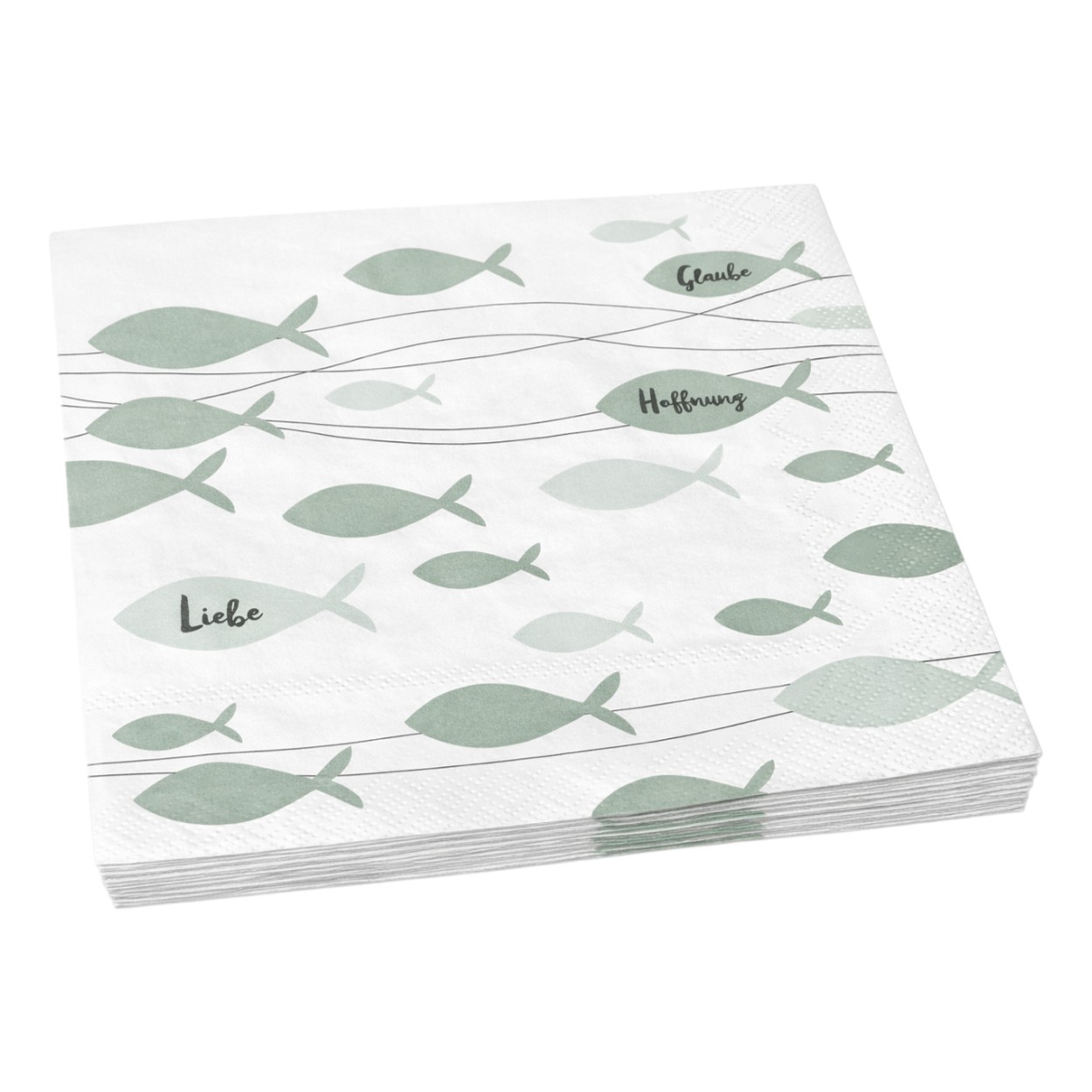 Serviette Grün mit vielen Fischen - für Kommunion & Konfirmation