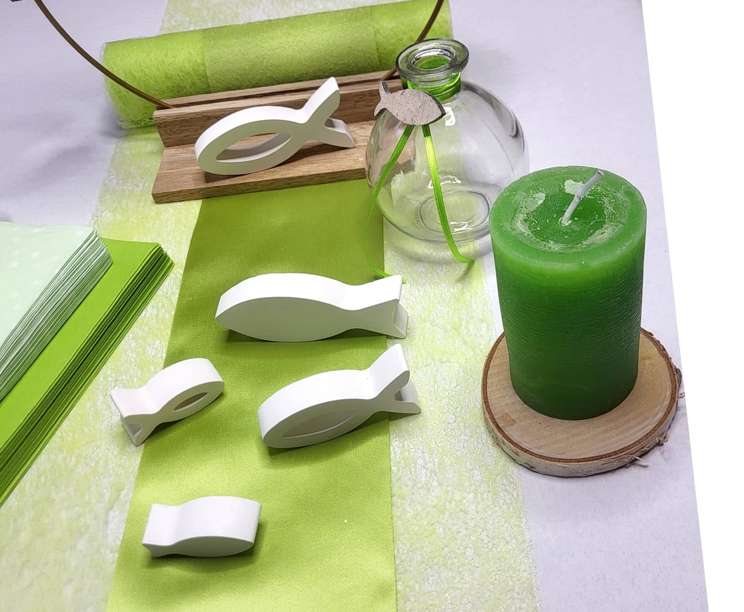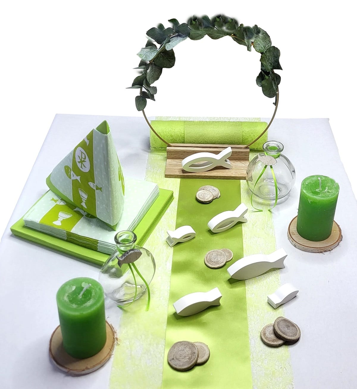 Tischdeko helles Grün für Kommunion oder Konfirmation mit Fischen