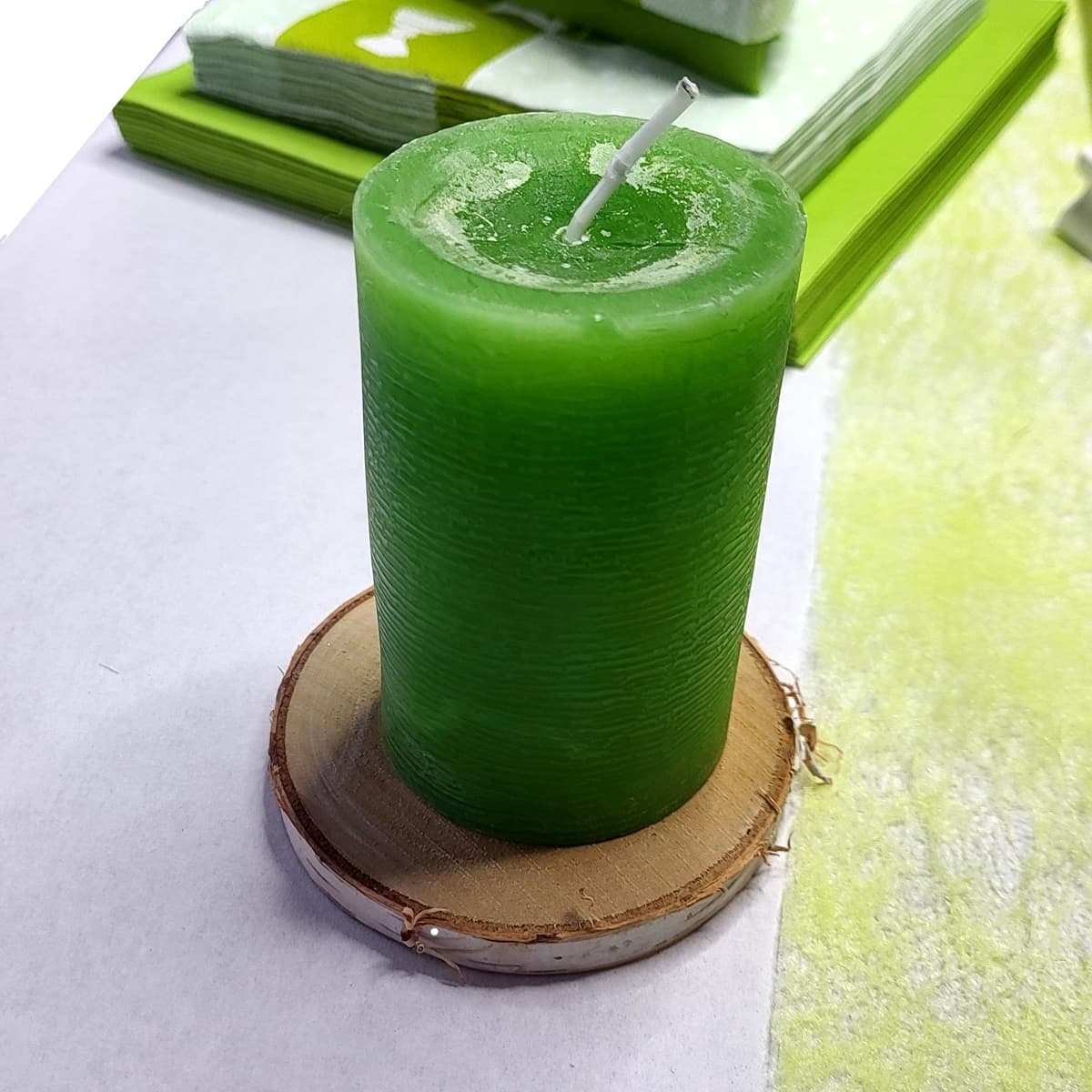 Tischdeko Deko Kommunion Konfirmation Set in hellen Grüntönen , mit Kerzen, Vasen , Baumscheiben als Kerzentellern, Servietten, Streudeko, 6 gegossenen Fischen. Ein Eukalyptusring aus Metall auf einem Holzfuß dient als Tischaufsteller dazu 2 verschiedene Tischbänder für eine gelungene Tischekoration .